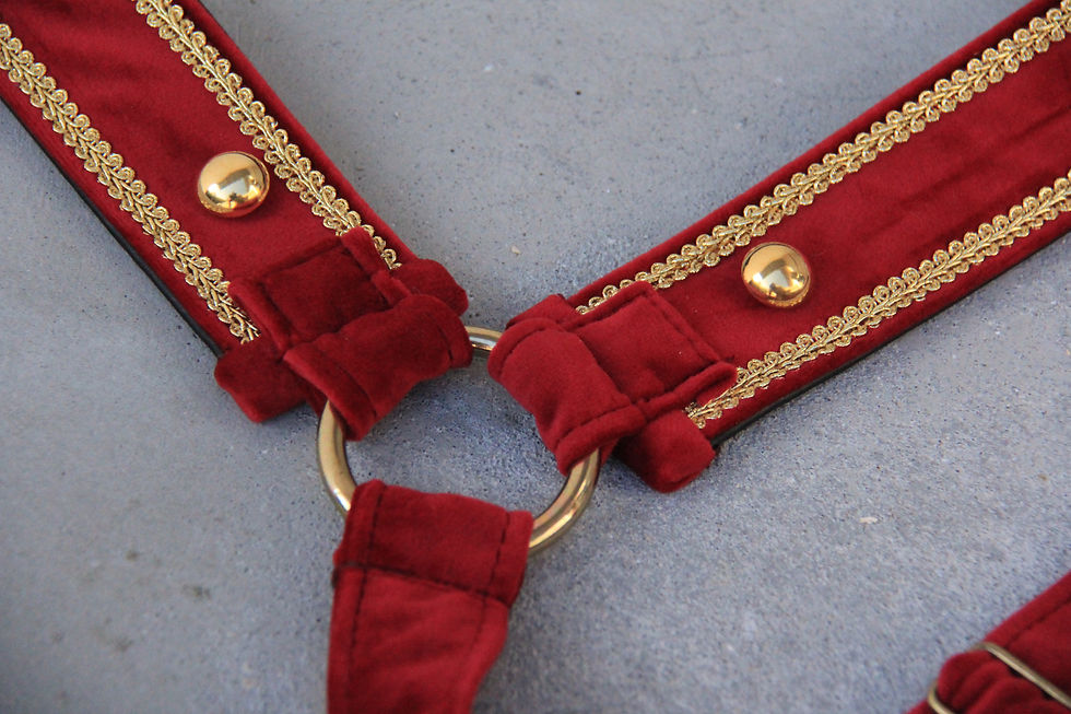 Collier col V - Haute école deluxe - Velours Bordeaux et Or