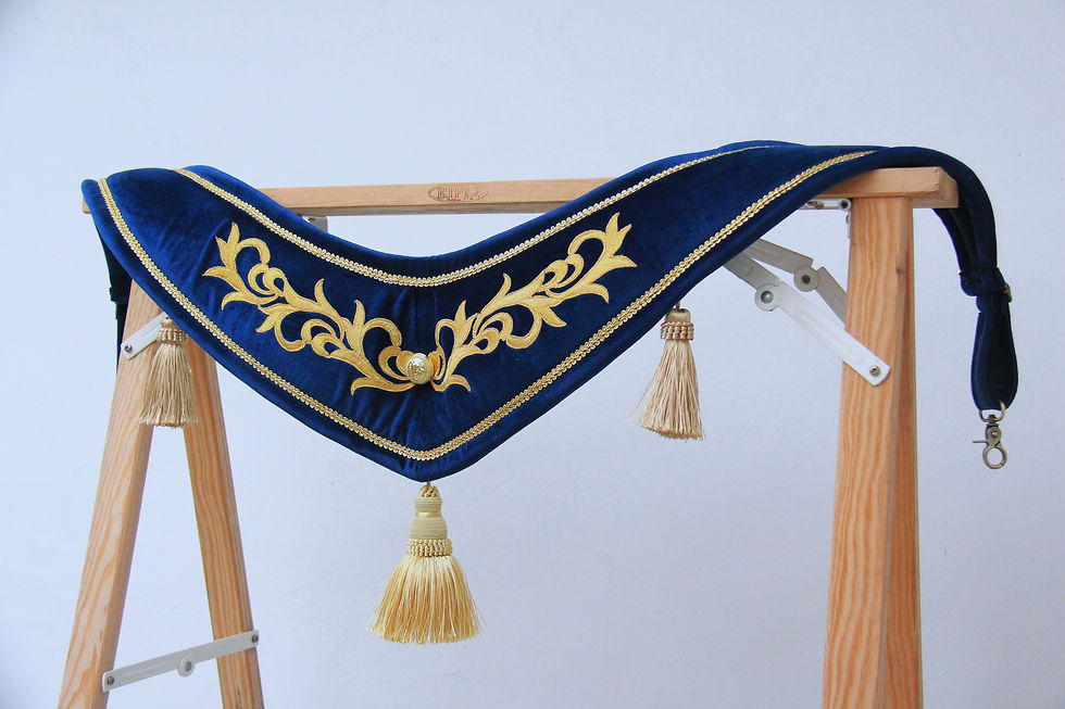 Collier col V - Haute école deluxe - Velours Bleu marine et Or